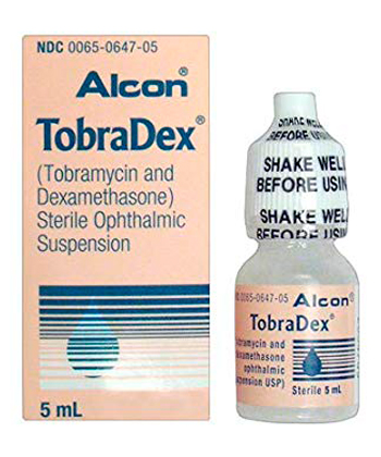 - Tobramycin Dexamethason wird zur Behandlung von bakteriellen Augeninfektionen und der damit verbundenen Entzündung eingesetzt. Das Medikament ist eine feste Kombination aus einem Aminoglykosid-Antibiotikum (Tobramycin) und einem Kortikosteroid (Dexamethason).